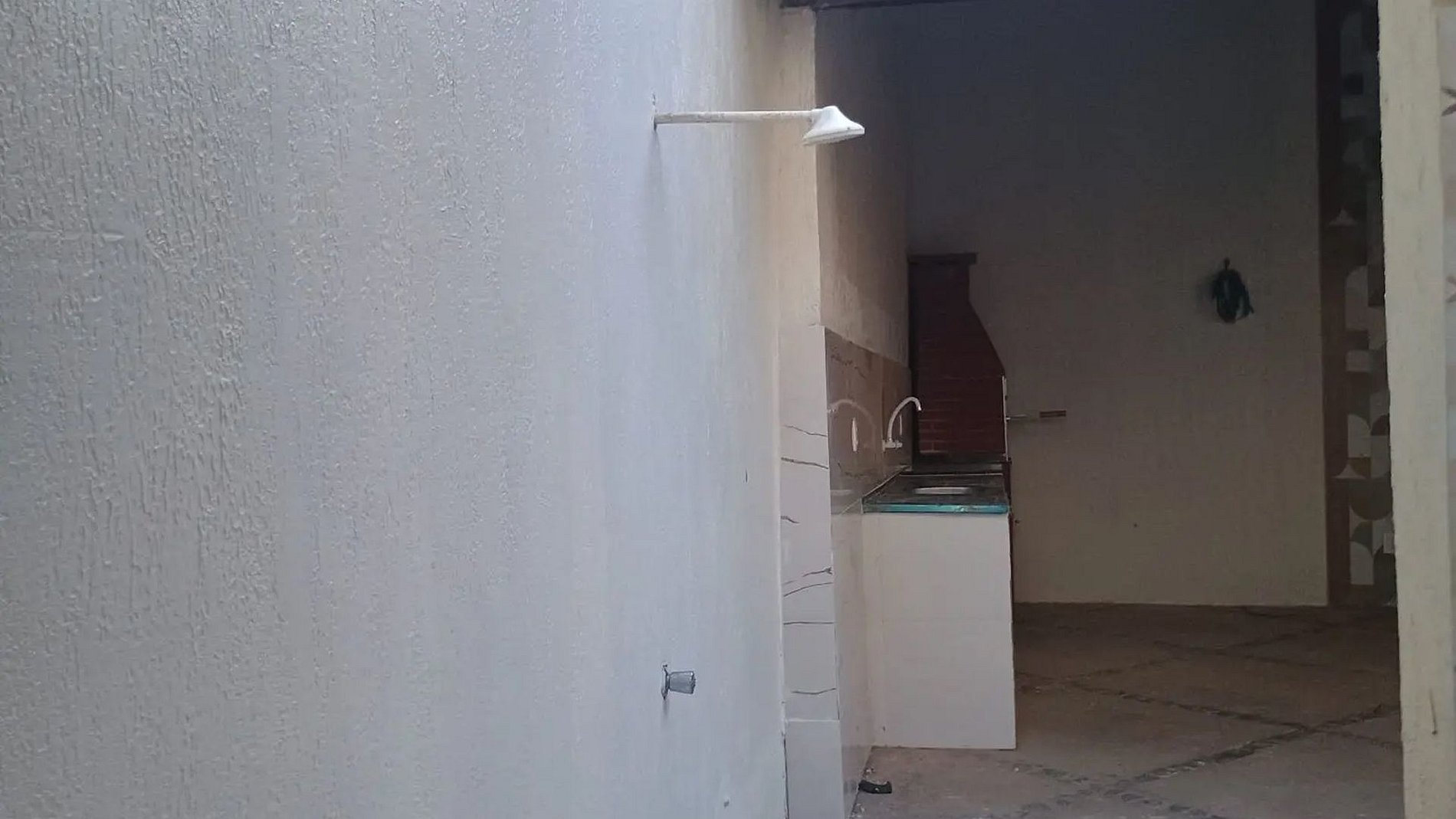 - Muro de 3 metros de altura e calçada com cerâmica na entrada.