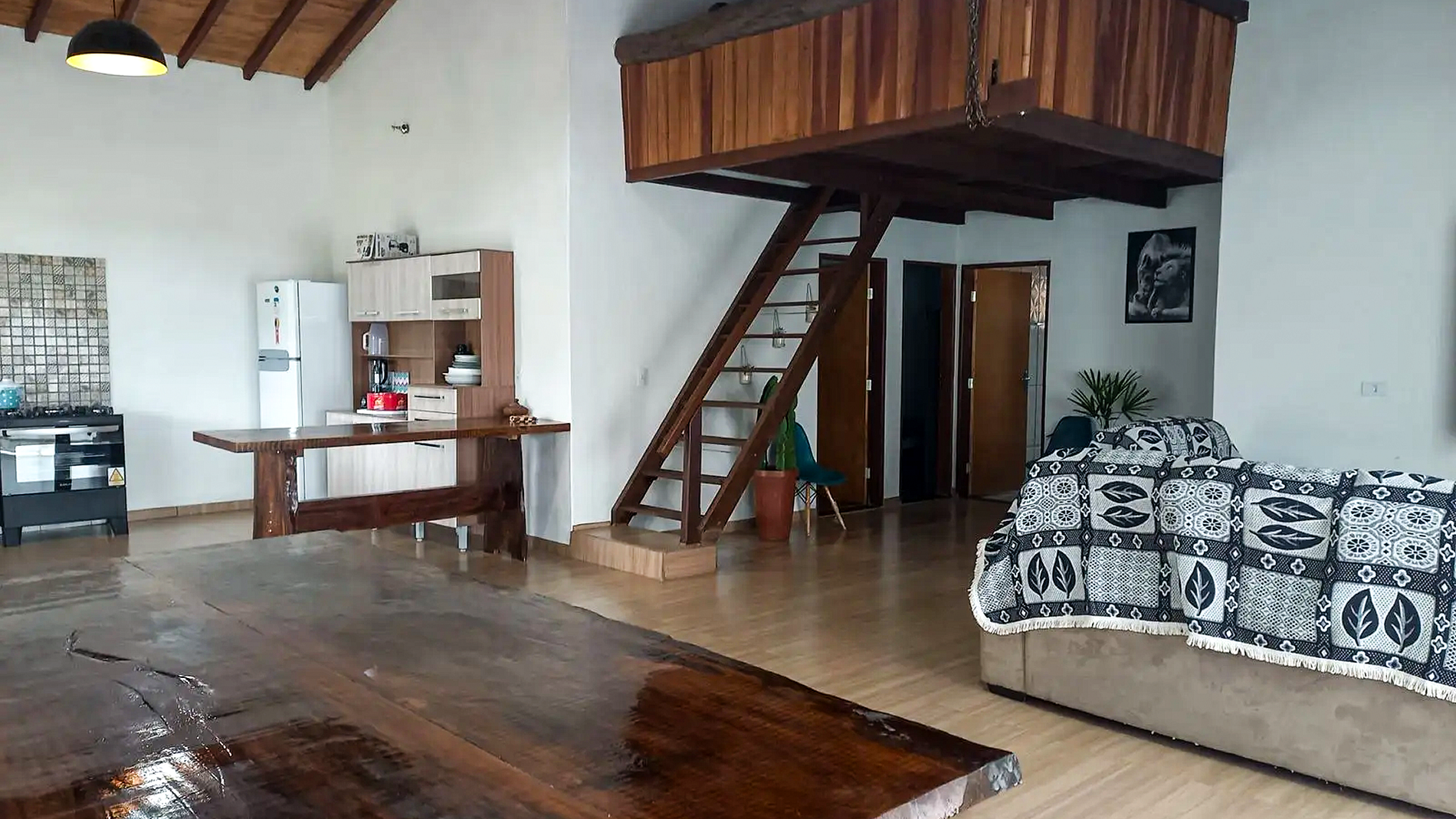 A Chácara Recanto da Paz - Oliani, em Socorro-SP, é ideal para até 15 pessoas. Possui 4 quartos (3 térreos e 1 no mezanino), cozinha integrada à sala com TV, Wi-Fi e mesa de ping-pong. Conta com 3 banheiros, área de lazer com piscina com hidro, churrasqueira, forno de pizza e fogão a lenha. Estacionamento amplo, redes de descanso e muito conforto. Perfeita para famílias ou grupos que buscam tranquilidade e contato com a natureza.