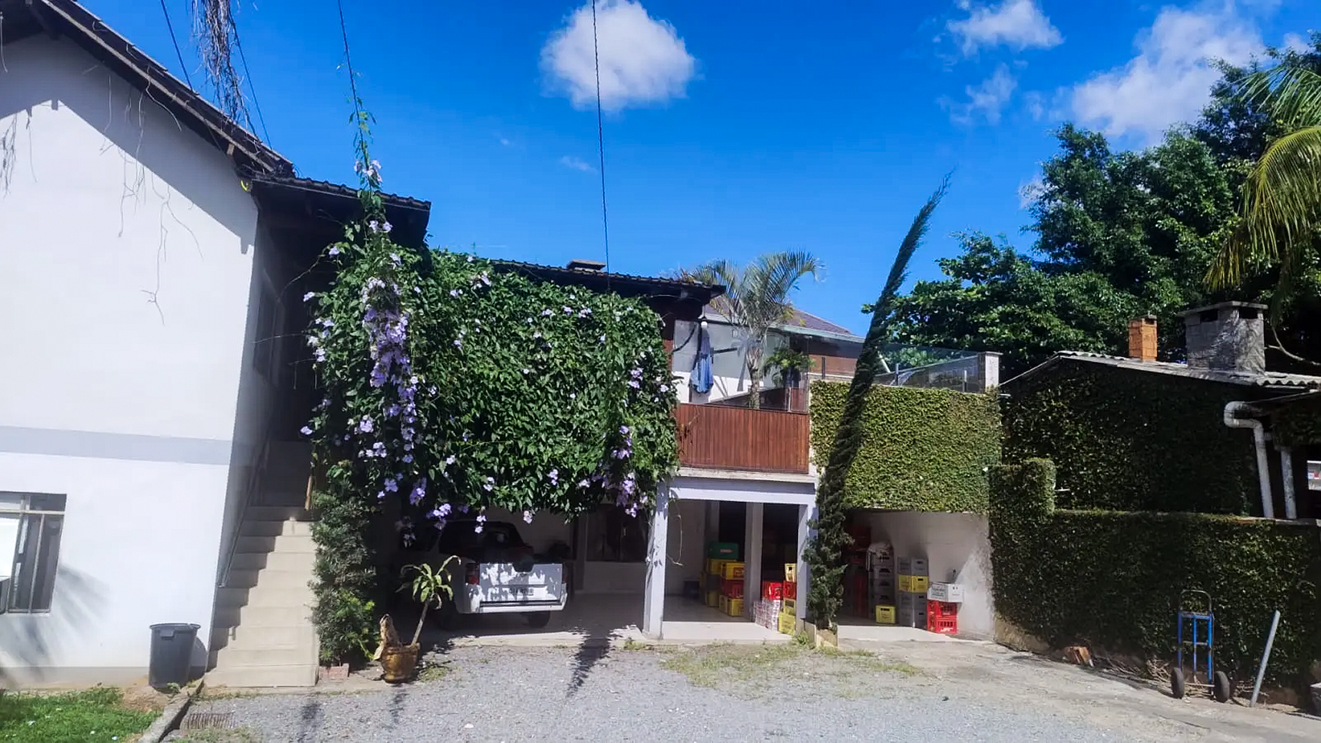 - Na área térrea da propriedade existem dois quartos ocupados por dois senhores que residem no local. Eles não terão acesso à casa alugada, que está situada no andar superior, juntamente com a piscina. A saída deles será feita pelo mesmo portão de entrada, podendo ser pelo estacionamento ou pelo portão de pedestres.