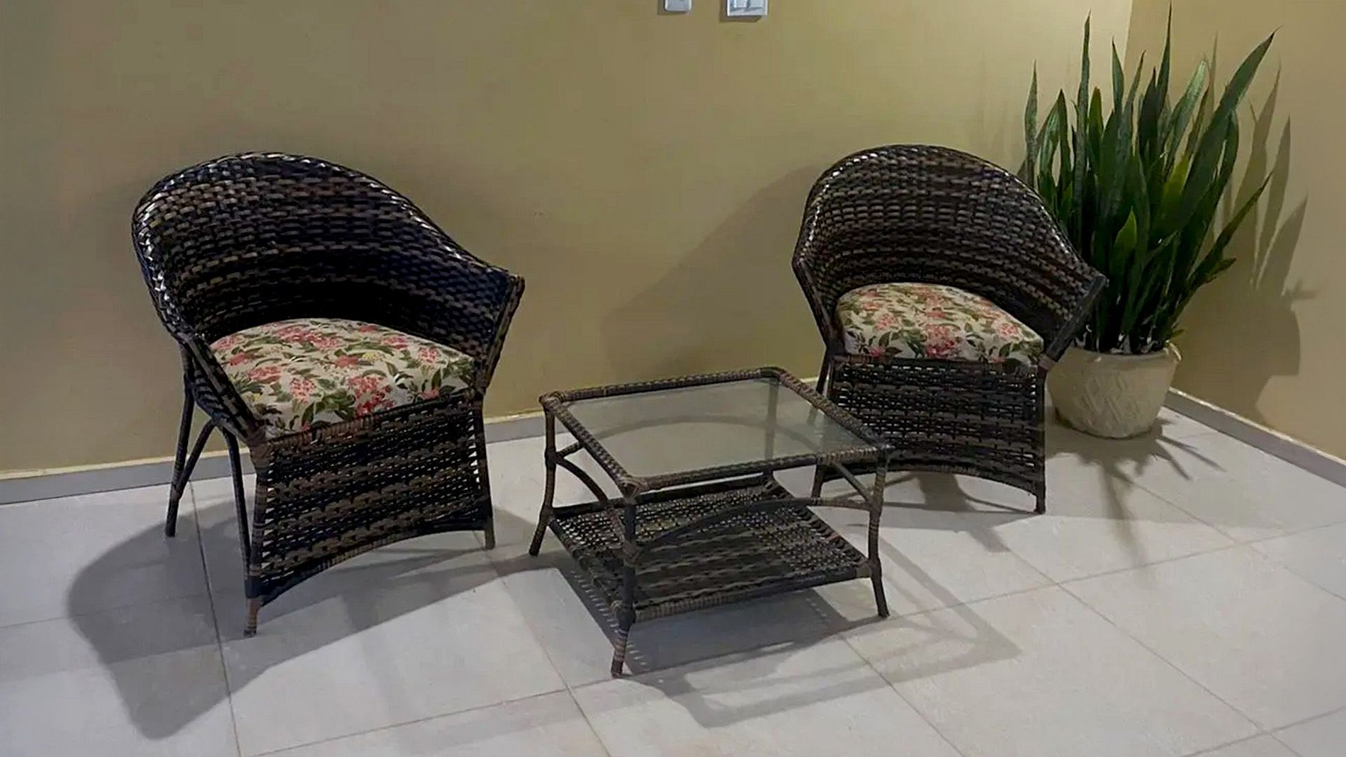 Área de estar com sofá/cadeira