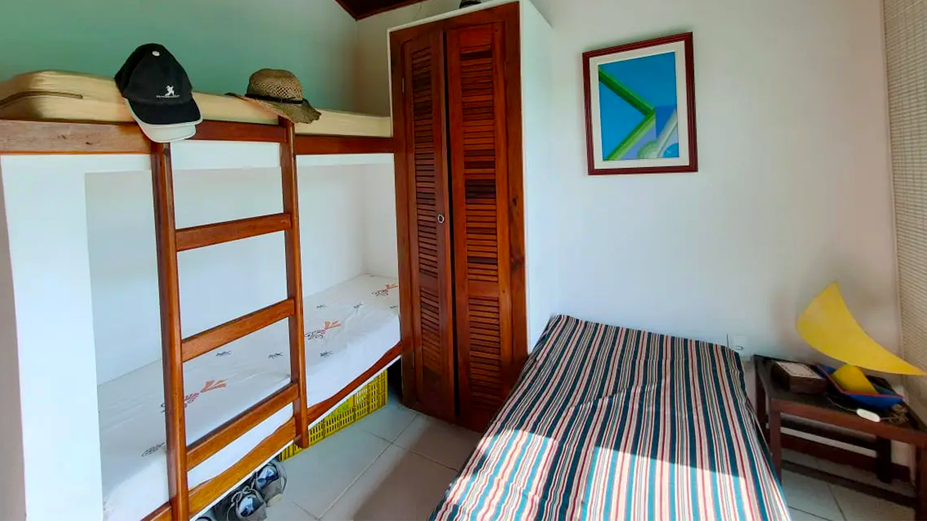 - ACOMODAÇÕES PARA 8 PESSOAS: A casa possui 3 quartos bem distribuídos, todos com ventiladores. -- Suíte: 1 cama de casal. -- Quarto 2: 1 beliche e 1 cama de solteiro. -- Quarto 3: 1 beliche e 1 cama de solteiro.
