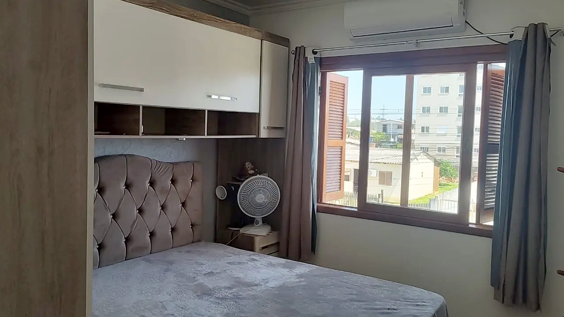 - ACOMODAÇÕES DETALHADAS PARA ATÉ 5 PESSOAS: -- Quarto 1 (Suíte): 1 cama de casal, climatizado com ar-condicionado. -- Quarto 2: 1 cama de casal, com ventilador. -- Sala: A sala é climatizada com ar-condicionado e acomoda um 5º hóspede confortavelmente.