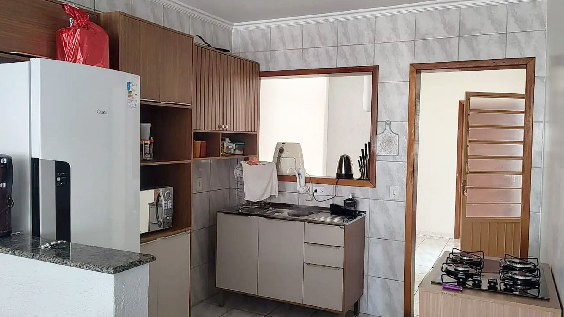 - ESTRUTURA FUNCIONAL: Cozinha completa com todos os utensílios, incluindo fritadeira elétrica. Sala de jantar com mesa para 6 pessoas.